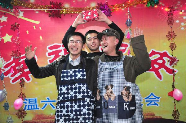 2012年12月25日,由二公司温哥华六期项目自编自导自演的迎新晚会在项目食堂举行,图为幸运获奖者领奖画面。