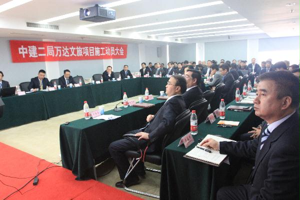 局副总经理朱文汇代表局总经理程贵堂作动员讲话,他强调了五点:一要提高认识,高度重视。文旅项目是万达的升级版产业,是未来的主要发展方向,要充分认识到文旅项目与普通地产项目及以往商业综合体项目的不同之处。二要提高规格,有效组织。要建立强而有力、行之有效的组织体系。三要专业配套,总包管理。现场项目经理部要按照统一的标准模式组建,必须保质保量,增设计划部和总包协调部。四要做好过程服务,管控到位。五要严格要求,保证落实,必须高标准地完成万达文旅项目施工管理总体要求。