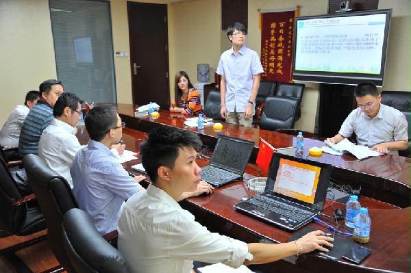 5月20日,代表我局参加总公司企业文化知识竞赛的三公司代表队,进行了最后一次内部模拟比赛,局党委工作部及三公司相关领导到现场进行指导。图为三名参赛选手正信心满满地答题。(闻江 报道摄影)