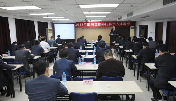 1月10日,2013年度局总部部门负责人述职会在京举行,局董事长、党委书记陈建光,总经理程贵堂等局领导,局总部各部门负责人以及总部各部门代表共100余人参加了会议。会议由局党委副书记、纪委书记、工会主席邓小林主持。