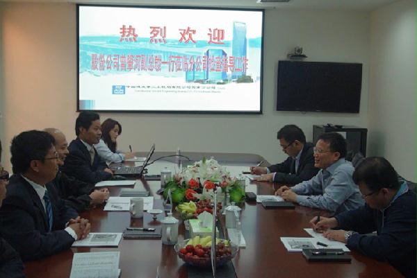 10月4日,中建股份有限公司副总裁曾肇河一行到局西南分公司调研指导工作,我局总会计师苏宪龄,局总经理助理、局西南分公司总经理苏振华,分公司党委书记、副总经理王景明等陪同。