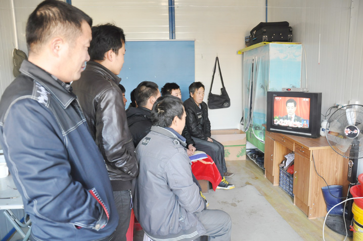 土木公司沈丹项目组织项目农民工收看十八大盛况