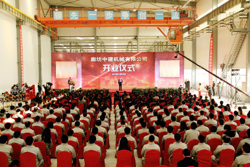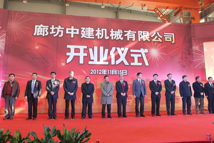 本网讯 11月15日,廊坊中建机械有限公司(以下简称中建机械)开业仪式在十三连跨的现代化钢结构厂房中举行,廊坊市市长聂瑞平、副市长顾强及安次区委书记王永威、区长许春声等市、区主要领导,中建股份公司副总裁刘锦章,副总会计师、财务公司总经理薛克庆,市场与客户管理部总经理吴爱国,中国工程机械工业协会会长祁俊及行业协会媒体和大客户代表,局董事长陈建光、总经理程贵堂、副总经理许远峰、总会计师苏宪龄、副总经理刘冬等局领导,局总部相关部门及局属各单位领导出席了开业仪式,中建机械公司全体员工共同见证了这一令人欢欣鼓舞的时刻。开业仪式由局党委工作部部长陈维清主持。