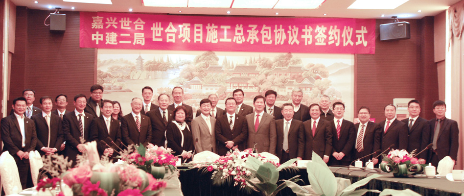 典礼上,嘉兴世合新农村开发有限公司常务董事巴大文,浙江省嘉兴市南湖区长吴建,浙江省台办主任裘小玲分别致辞,浙江省咨询委委员夏阿国宣布开工,陈董事长和程总经理与各界领导一起共同为项目培土奠基。典礼结束后,双方还举行了嘉兴世合项目施工总承包协议书签订仪式。