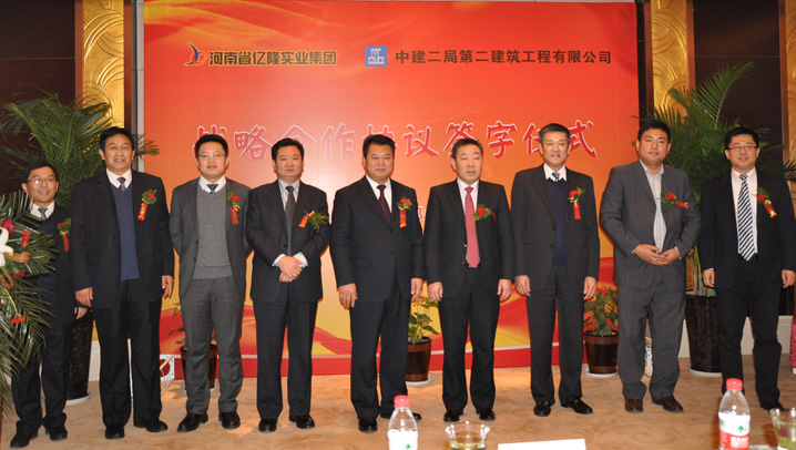 12月26日,二公司与河南亿隆实业集团战略合作签约仪式在郑州举行,双方签署了总额100亿元的总承包框架协议。局总经理程贵堂,副总经理刘冬,副总经理兼二公司总经理杨昌德出席了签约仪式。