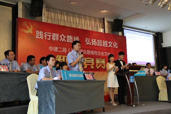7月1日,局上海分公司开展了以“践行群众路线 弘扬超越文化”为主题的群众路线与企业文化知识竞赛活动,让员工们通过学习了解企业文化和党的知识的方式来庆祝党的生日。北京市国资委宣传处处长荀永利,上海市合作交流办公室宣传处处长王靖,上海市施工行业协会信息咨询部主任郭庆成,局总经理助理、党委工作部部长陈维清等领导亲临比赛现场参与活动。