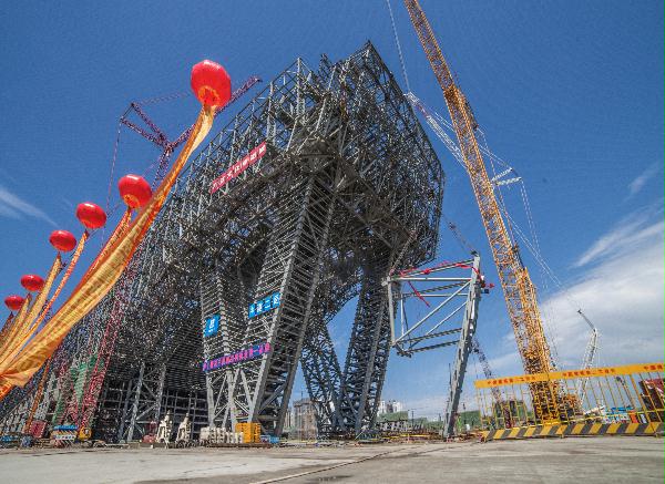 6月9日,随着最后一个钢构件离地起吊,由四公司承建的世界最大室内滑雪场——哈尔滨万达茂项目钢结构全部顺利封顶。万达集团首席工程师冷传金,哈尔滨万达城投资有限公司总经理王顺成,局副总经理、总工程师张志明出席封顶仪式。