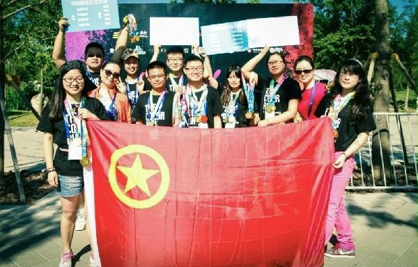 6月20日,在北京市园博园,一群二十人的小团队手举“中建蓝”绘就的“行为十典”、“礼仪九章”的宣传牌和鲜艳的团旗交相辉映。他们就是北京市丰台团区委为“The Color Run 彩色跑”招募的中建二局青年志愿者。