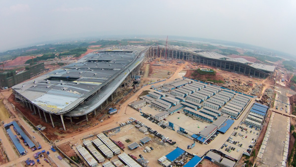 8月26日,随着交通大厅主入口最后一块网架吊装完成,由局西南分公司承建的我国中西部规模最大、功能最全、品质最高的国际博览中心项目——中国西部国际博览城(一期)项目主体结构全面封顶。