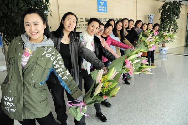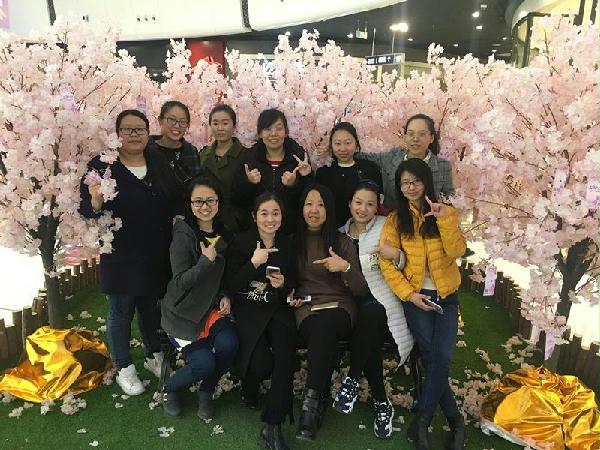 天津分公司:3月8日,槐房万达广场项目为了迎合节日气氛,他们特在广场公区摆放了樱花与长椅供项目11名“金花”合影留念,并组织在万达广场进行了观影、就餐等娱乐活动。“金花”们在樱花树衬托下展示出了她们美丽迷人的笑容。