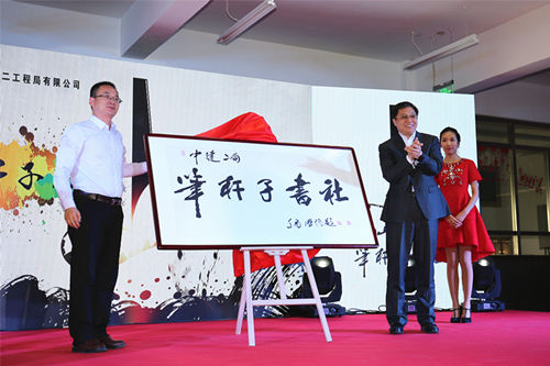 宣传片过后,李国彦秘书长和许远峰常务副总经理为“笔杆子书社”隆重揭幕,也宣告中建二局“笔杆子书社”正式成立。
