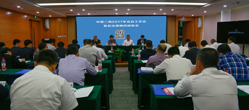 4月25日,中建二局2017年度法治工作会暨总法律顾问述职会在京召开。中建股份公司副总法律顾问、法律事务部总经理、市场与项目管理部总经理秦玉秀,局总经理、党委副书记程贵堂,局副总经理、总经济师、总法律顾问郭建军,以及局属各单位主管领导、总法律顾问等共56人参加了此次会议。会议由局法律事务部总经理冯大林主持。本次会议开启了法治二局建设工作的新篇章。