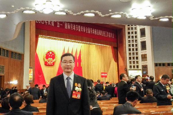4月28日,在庆祝“五一”国际劳动节暨表彰全国劳动模范和先进工作者表彰大会上,我局台山核电项目总工程师李政自豪地佩戴上“全国劳动模范”这枚金光灿灿的奖章(见图)。这枚奖章寄托着他的核电梦想。