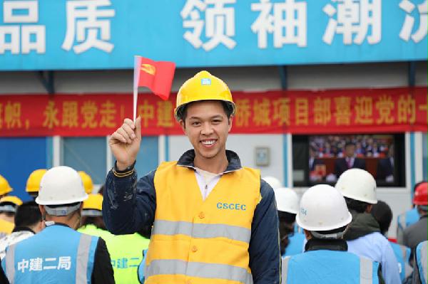 “受到项目党支部的邀请,今天很高兴能和大家一起观看十九大开幕会。”中建二局上海分公司越南籍员工武氏茶一大早就来到项目会议室。作为一名参建中国在越项目的外籍员工,武氏茶很感慨:“习近平总书记在报告中提到要坚持打开国门搞建设,积极促进‘一带一路’国际合作,这让我和我的国家受益很多。我们正在建设的越南项目,是越南胡志明市的地标性工程,我很骄傲,很自豪。未来,我将在平凡的岗位上,干好本职工作,继续为推动中越两国交流作出自己的贡献。”