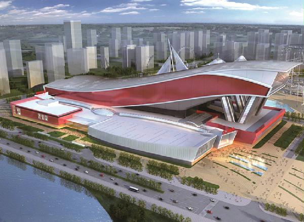 青岛东方影都大剧院 其幕墙造型十分复杂,是局异形幕墙施工技术的代表。局还承建了海南国际会展中心、江苏大剧院等工程。