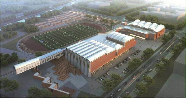 天津大学新校区综合体育馆工程 工程整体造型为发令枪形状,由鸟巢中方设计师李兴刚设计。获2016年“鲁班奖”,屋面的混凝土波纹施工技术达到国际领先水平。