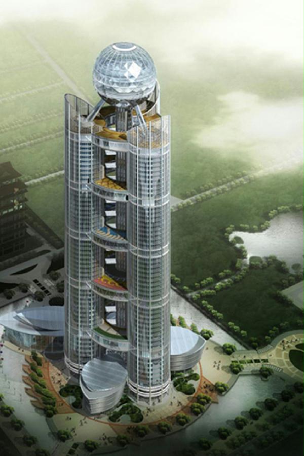空中华西村 高328米,中国农村第一高楼,华西村的标志。2008年2月开工,2011年1月竣工。