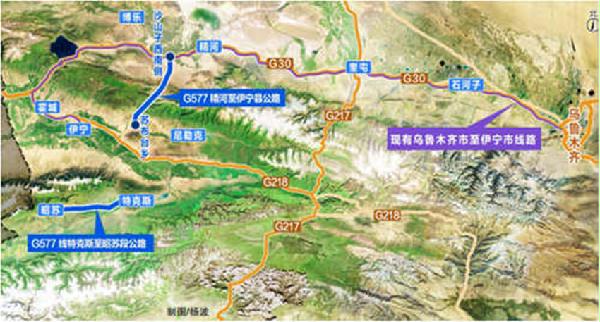 新疆G577公路 新疆最大的投资项目,总投资约129.76亿元,2017年6月开工。项目建成后,从乌鲁木齐去伊宁市的距离将缩短170公里。