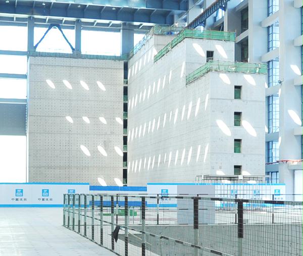经专业仪器测试,墙体垂直度、地面平整度允许偏差不超过2毫米,130米范围内加载孔定位精确在1毫米,达到世界先进水平。(闻江 孔常平 报道摄影)