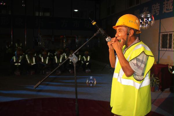 “好啊,太棒了,再来一个哦嘛!”随着悠扬美妙的口琴声在局北京分公司亦庄金茂悦项目部响起,现场近七百名观众掌声雷动。这是该项目抹灰工郭师傅正在表演,他用一把老式的口琴快乐地吹奏着乐曲《我们的事业比蜜甜》。