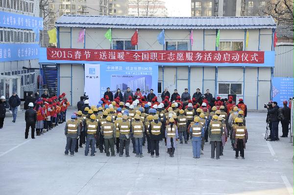 1月27日,全国志愿服务联合会职工委员会在三公司北京大吉片项目举行了2015年春节“送温暖”全国职工志愿服务活动启动仪式。启动仪式上,项目成立了第一支职工志愿服务队——中建二局三公司志愿服务队,服务队将为项目农民工提供车票购买等志愿服务,确保项目农民工在春节前顺利返乡。