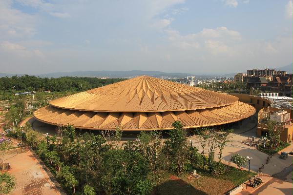 该工程总建筑面积为1.95万平方米,建筑高度为21米。整栋建筑外壳采用空间钢结构体系,为金色棕榈叶造型。主要包括观众厅、演出舞台、办公用房等。(周莹 樊星)