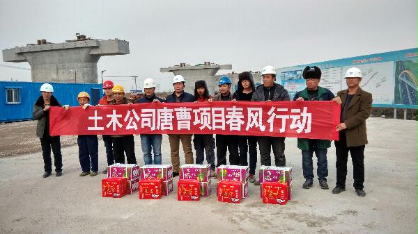 2月22日,土木公司启动了“春风行动——为工友送元宵”活动,元宵节当天,在已经复工的项目为职工和农民工友送上了温暖的“元宵宴”,一箱箱水果、一袋袋汤圆给让身在异乡的职工也感受到了家的温暖。