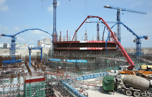 近日,中建电力广西防城港核电项目3号机组内层安全壳第一层混凝土浇筑完成。标志着核岛岛心的双层“盔甲”开始“齐头并进”。