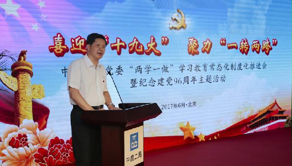 6月30日,局党委“两学一做”学习教育常态化制度化推进会暨庆祝建党96周年“七一”主题活动在京举行。北京市国资委副巡视员屈少波、党群工作处副处长王金普和局党委书记、董事长陈建光及在京局党政领导出席活动。活动由局党委副书记、纪委书记、工会主席邓小林主持。 本次活动旨在传承超越文化,发掘“楷模”精神,营造喜迎“十九大”,聚力“一转两跨”的良好氛围,通过部署推进“两学一做”学习教育常态化制度化,传达落实总公司党组“112”制度体系精神,为企业转型升级提供组织保障和精神动力,为建党96周年和局成立65周年献礼! 局党委常委、总会计师刘冬传达了学习中央和上级党组织关于“两学一做”学习教育常态化制度化要求及中建总公司党组“112”党建制度体系精神。局党委常委、常务副总经理许远峰作了局“两学一做”学习教育常态化制度化的工作部署。 活动中,6名同志分别讲述了身边的优秀共产党员和党支部的故事。局党委还对北京市国资委基层党建创新项目奖、全国青年文明号、全国青年安全生产示范岗获奖单位进行了表彰。陈建光书记启动了局微信两周年纪念版表情包发布仪式。