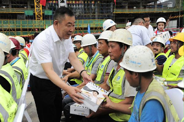 慰问开始前,局董事长、党委书记陈建光发表了热情洋溢的致辞。陈董事长回顾了二局65年来的光辉发展历程,向关心支持二局发展的社会各界朋友、向为我局发展做出突出贡献的广大员工及家属、向长期以来奋战在我局项目一线的工人朋友们表示感谢。