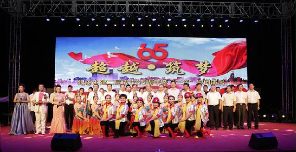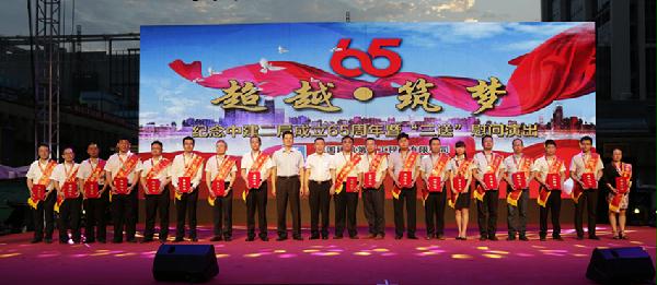 传承超越文化,聚力一转两跨。7月25日,纪念中建二局成立65周年暨“三送”慰问演出在北京金丰28A项目隆重举行。局党政领导,局总部各部门负责人,局属各单位党政主要负责人及基层员工代表、农民工兄弟代表等共500余人共同见证了这一历史时刻。慰问演出以“超越·筑梦”为主题。活动中,局领导共同慰问了一线建设者代表,发布了局“65张超越名片”,并隆重表彰了“65名”超越楷模。