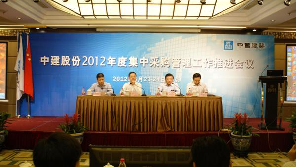 5月23日-24日,中国建筑2012年度集中采购管理工作推进会议在京召开。中国建筑工程总公司总经理、党组成员,中国建筑股份有限公司总经理、集中采购领导小组组长官庆出席会议并讲话,中国建筑股份有限公司首席信息官、办公厅主任颜建国做题为《全面提升中国建筑信息化水平》的专题报告,中国建筑股份有限公司副总经济师薛克庆出席会议并发言。会议由中国建筑工程总公司党组成员,中国建筑股份有限公司副总裁刘锦章主持。